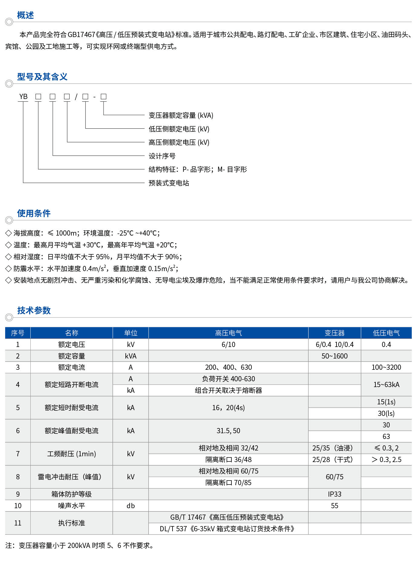 本產品完全符合GB17467《高壓/低壓預裝式變電站》標準。適用于城市公共配電、路燈配電、工礦企業、市區建筑、住宅小區、油田碼頭、賓館、公園及工地施工等,可實現環網或終端型供電方式。