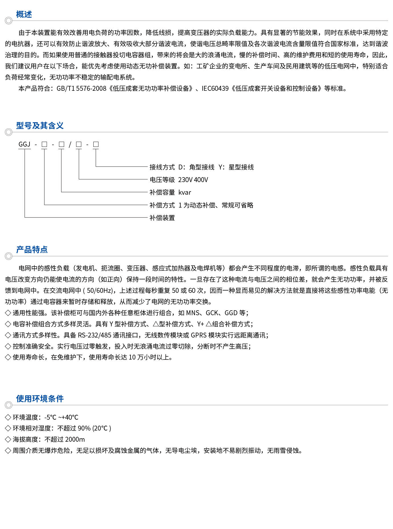 GGJ低壓無功功率補償裝置